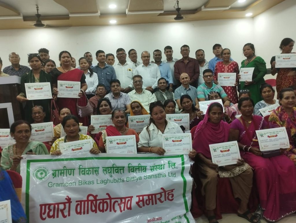 विराटनगर । ग्रामीण विकास लघुवित्त वित्तीय संस्था लिमिटेड, सञ्चालन तथा सुपरिवेक्षण कार्यालय विराटनगरले आफ्नो एघारौं वार्षिकोत्सव भव्यताका साथ मनाएको छ । शुक्रबार विराटनगरमा आयोजित एक विशेष समारोहमा संस्थाले ३८ जना उत्कृष्ट महिला ऋणी सदस्यलाई नगद पुरस्कारसहित सम्मान गरेको हो ।