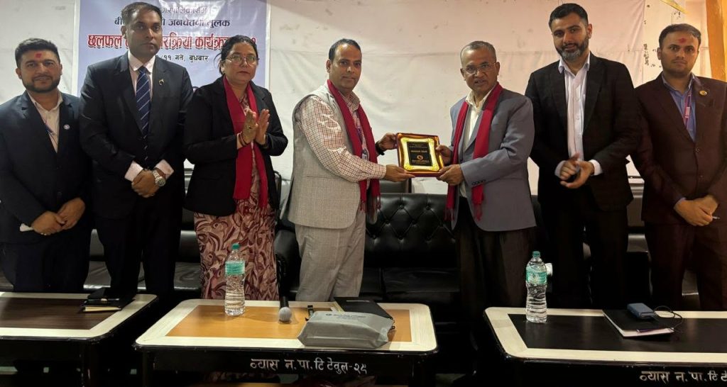 काठमाडौं । नेपाल बीमा प्राधिकरणको गण्डकी प्रदेश कार्यालयले तनहुँको व्यास नगरपालिकासँग बीमा सम्बन्धी छलफल तथा अन्तरक्रिया कार्यक्रम सम्पन्न गरेको छ। “स्थानीय सरकारसँग बीमा” शीर्षकअन्तर्गत आयोजित उक्त कार्यक्रम चैत ११ गते नगरपालिकाको सभा हलमा सम्पन्न भएको हो।
