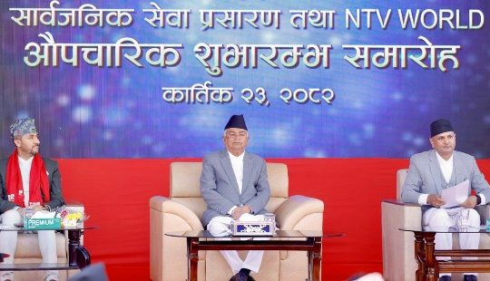 काठमाडौँ । पति रामचन्द्र पौडेलले सार्वजनिक सेवा प्रसारण (पिएसबी) नेपालले स्थापनाको प्रथम वार्षिकोत्वसका अवसरमा ‘एनटिभी…