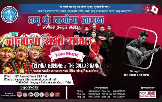 नागोया। जापानको नागोयामा चर्चित नेपाली गायिका तृष्णा गुरुङ, ‘द कोलाब ब्याण्ड’ र कर्म शेर्पाले प्रस्तुति…